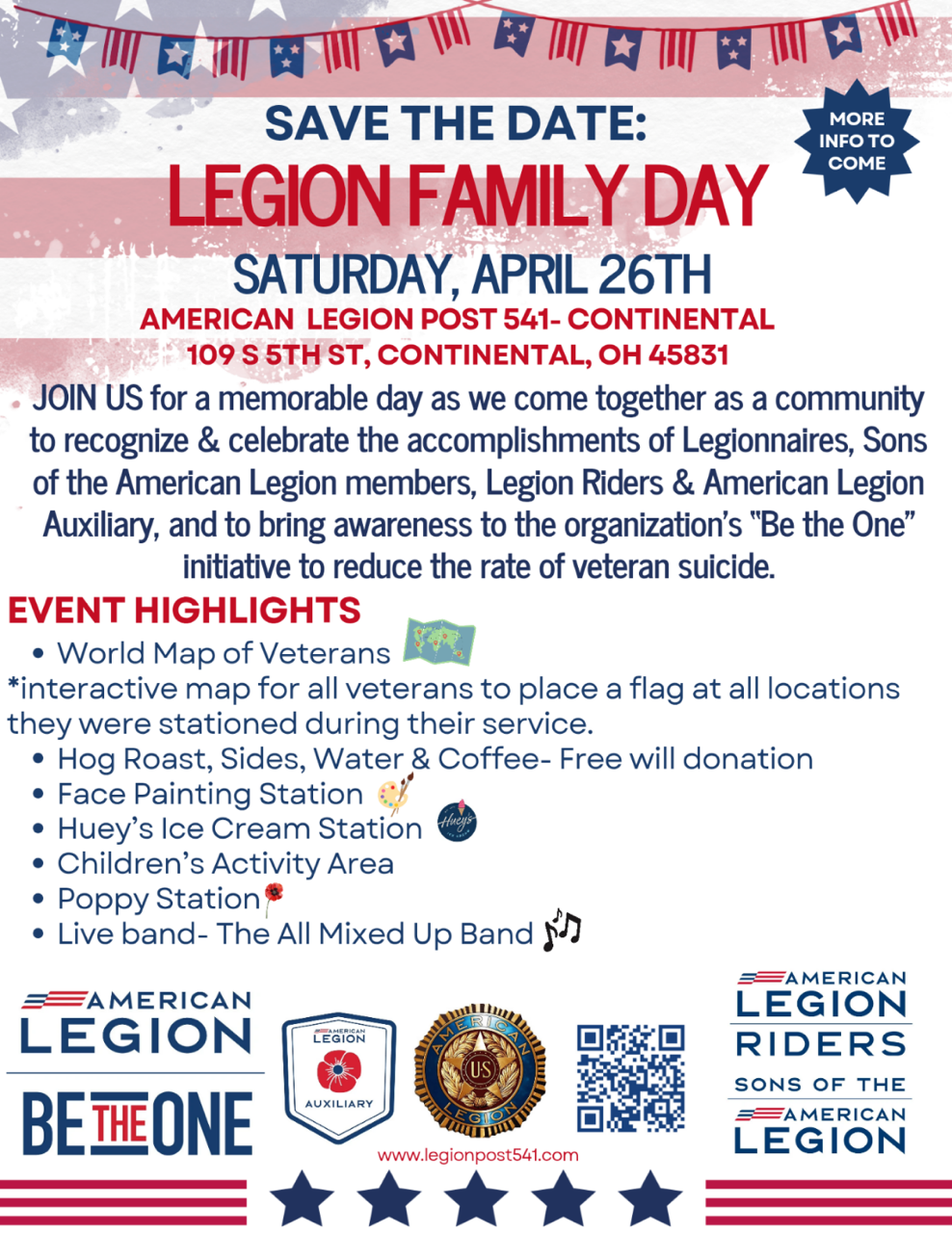 JOIN US for a memorable day as we come together as a community to recognize & celebrate the accomplishments of Legionnaires, Sons of the American Legion members, Legion Riders & American Legion Auxiliary, and to bring awareness to the organization's "Be The One" initiative to reduce the rate of veteran suicide.